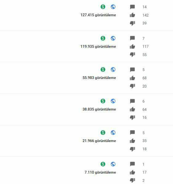 Kanaldaki videoların türü ve sayısı : Alıcıya - Elle Yüklendi