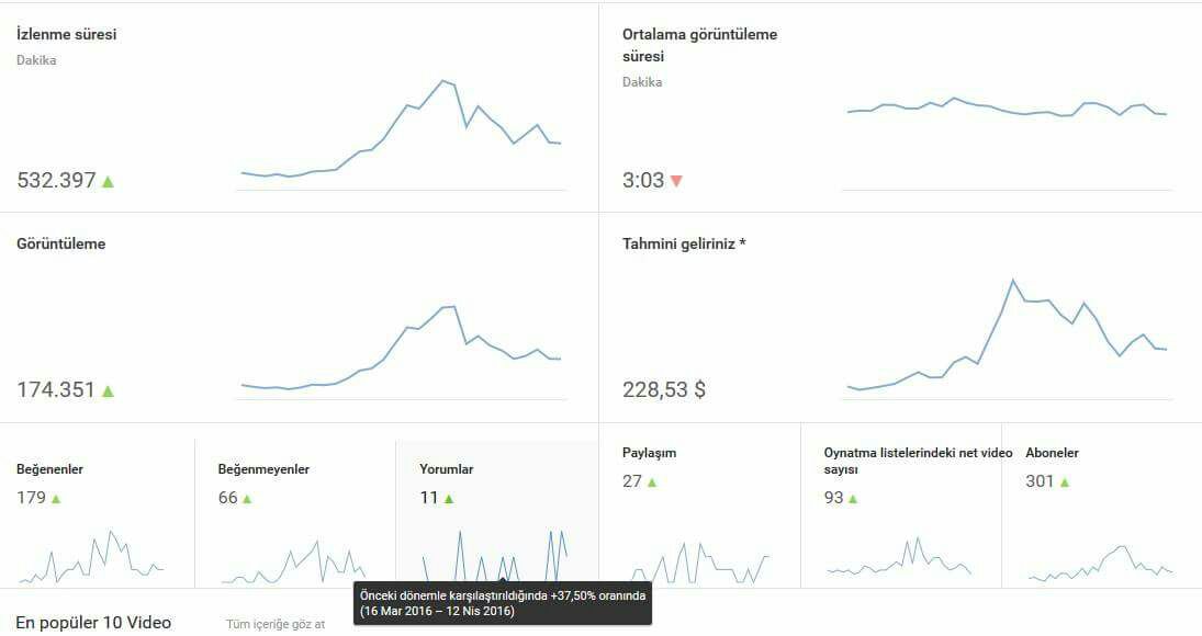 Kanal üzerinden kazanılan aylık ortalama gelir ? :228 $
